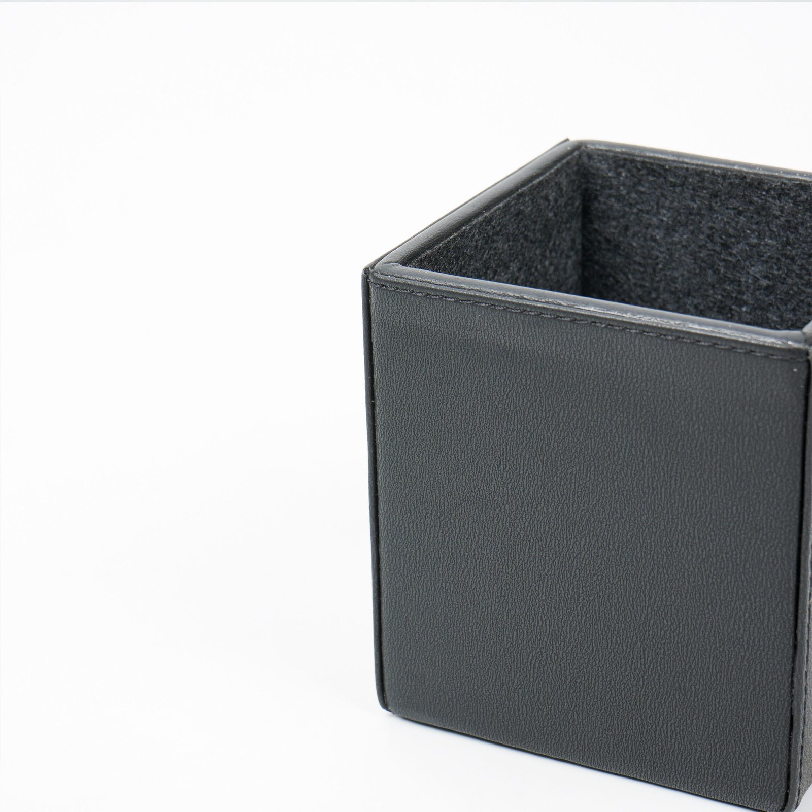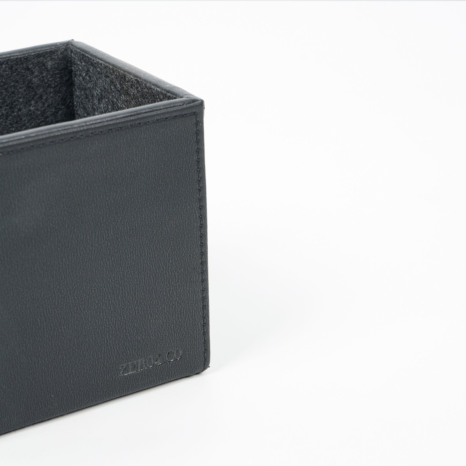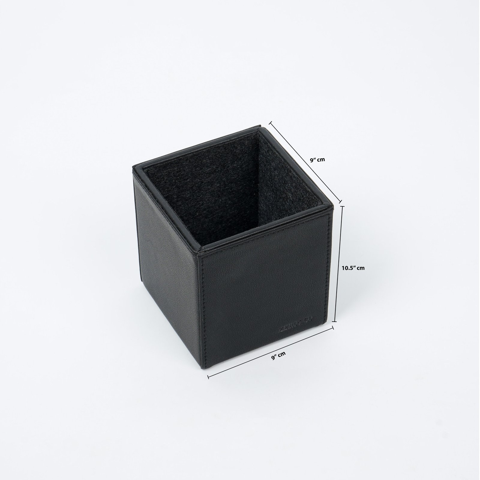 Keep your desk neat and organised with this elegant square organiser holder. Designed with a premium black exterior and a soft felt-lined interior, it offers a stylish solution for storing everyday essentials while protecting them from scratches. The clean, structured design makes it a perfect fit for modern interiors.